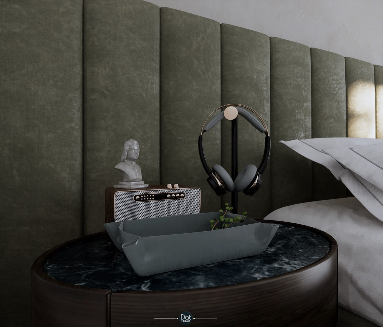 صحنه آماده داخلی اتاق خواب اسکچاپ